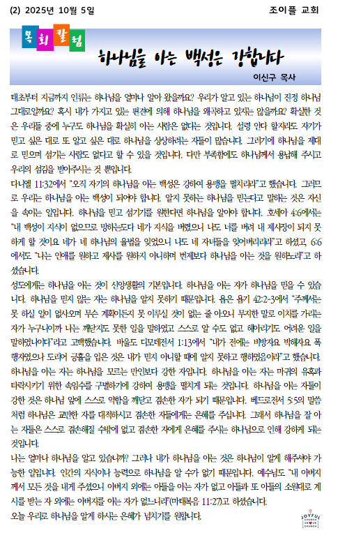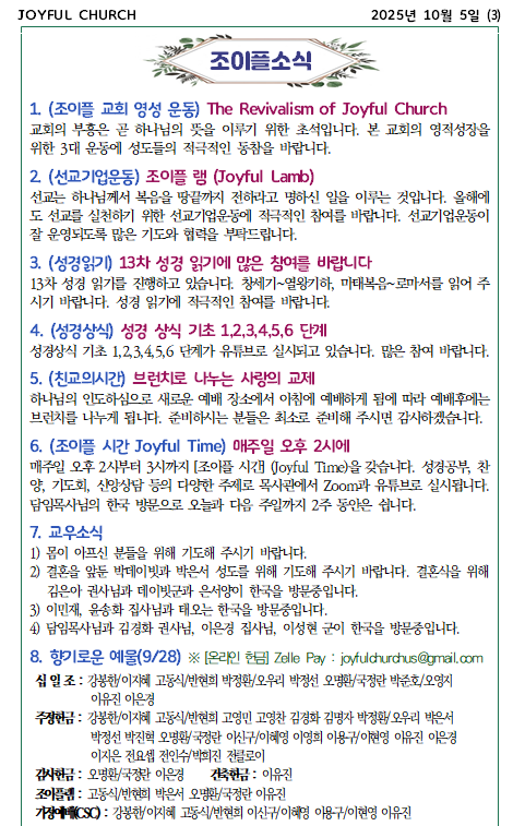 * 2025년 10월 5일 조이플 교회 온라인 주보입니다.