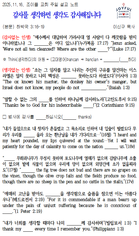 * 2025년 11월 16일 조이플 교회 주일 설교 노트입니다.