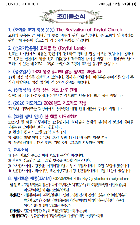 | 2025년 12월 14일 조이플 교회 온라인 주보 (0) | 2025.12.13 |