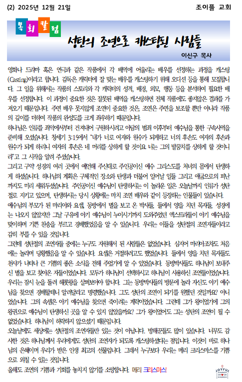 *2025년 12월 21일 조이플 교회 온라인 주보입니다.