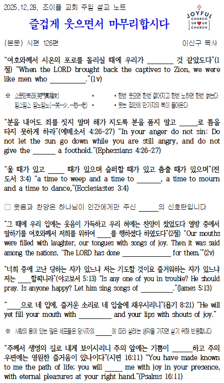 * 2025년 12월 28일 조이플 교회 주일 설교 노트입니다.