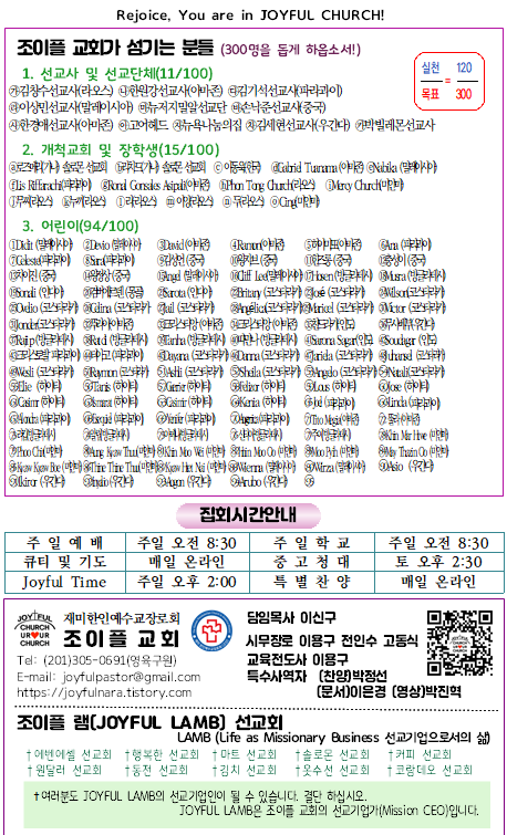 | 2026년 1월 4일 조이플 교회 온라인 주보 (0) | 2026.01.04 |