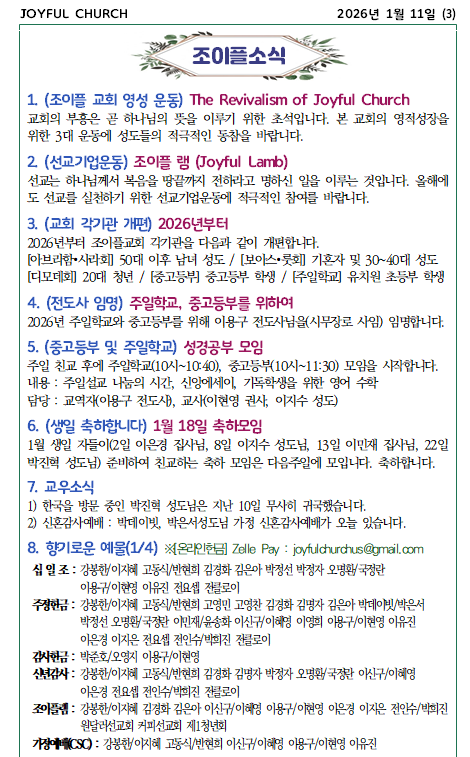 | 2026년 1월 4일 조이플 교회 온라인 주보 (0) | 2026.01.04 |