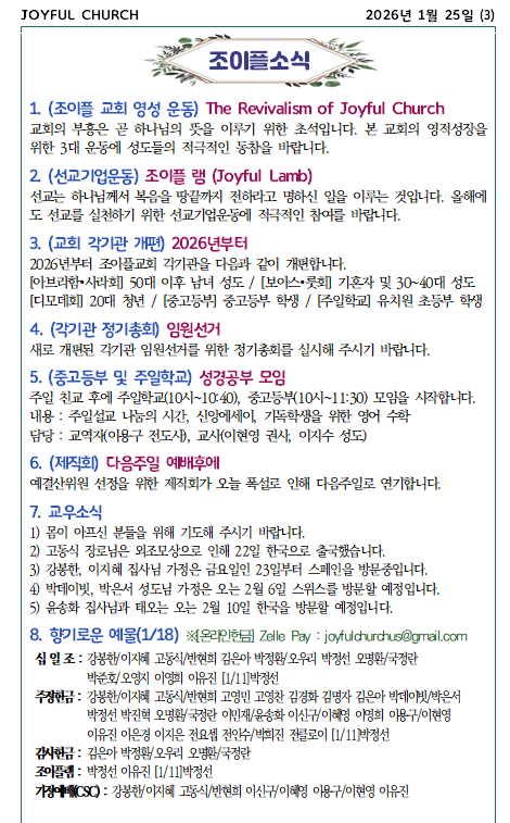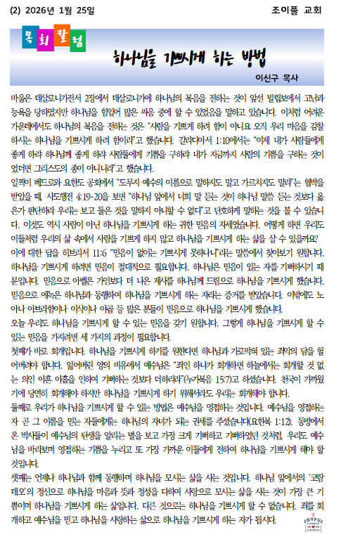 * 2026년 1월 25일 조이플 교회 온라인 주보입니다.