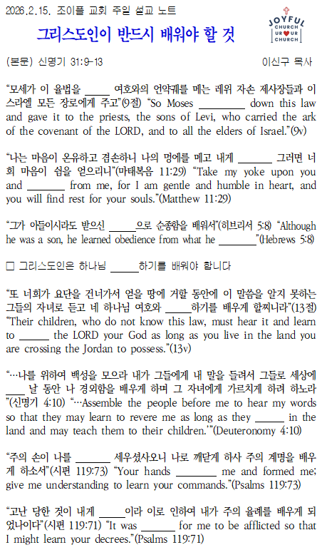 * 2026년 2월 15일 조이플 교회 주일 설교 노트입니다.